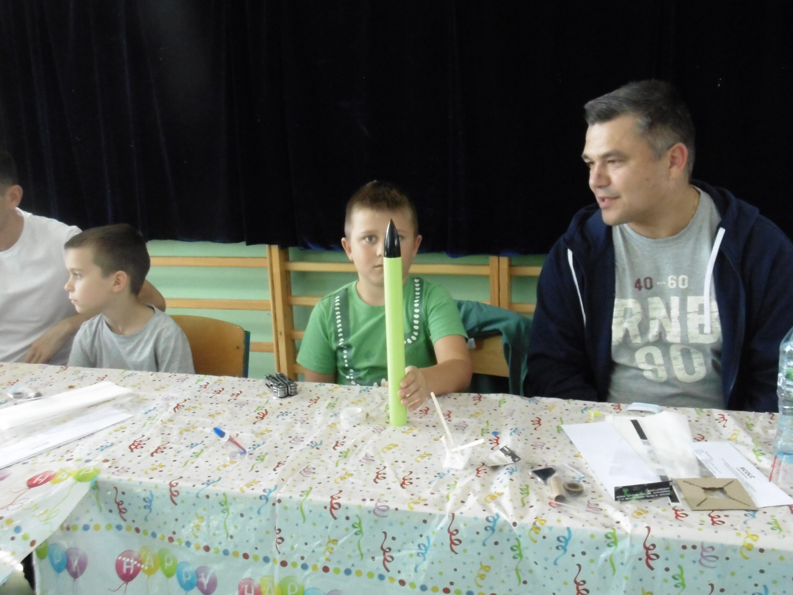Rodzice wspólnie ze swoimi pociechami mogli poczuć się jak konstruktorzy rakiet – najpierw wszyscy poznali zasady ich działania : jak się poruszają, co je napędza i dlaczego lecą prosto w niebo. Potem przyszedł czas na praktykę – każdy mógł zbudować własną rakietę z prostych materiałów, a następnie sprawdzić jej możliwości podczas emocjonującego startu.