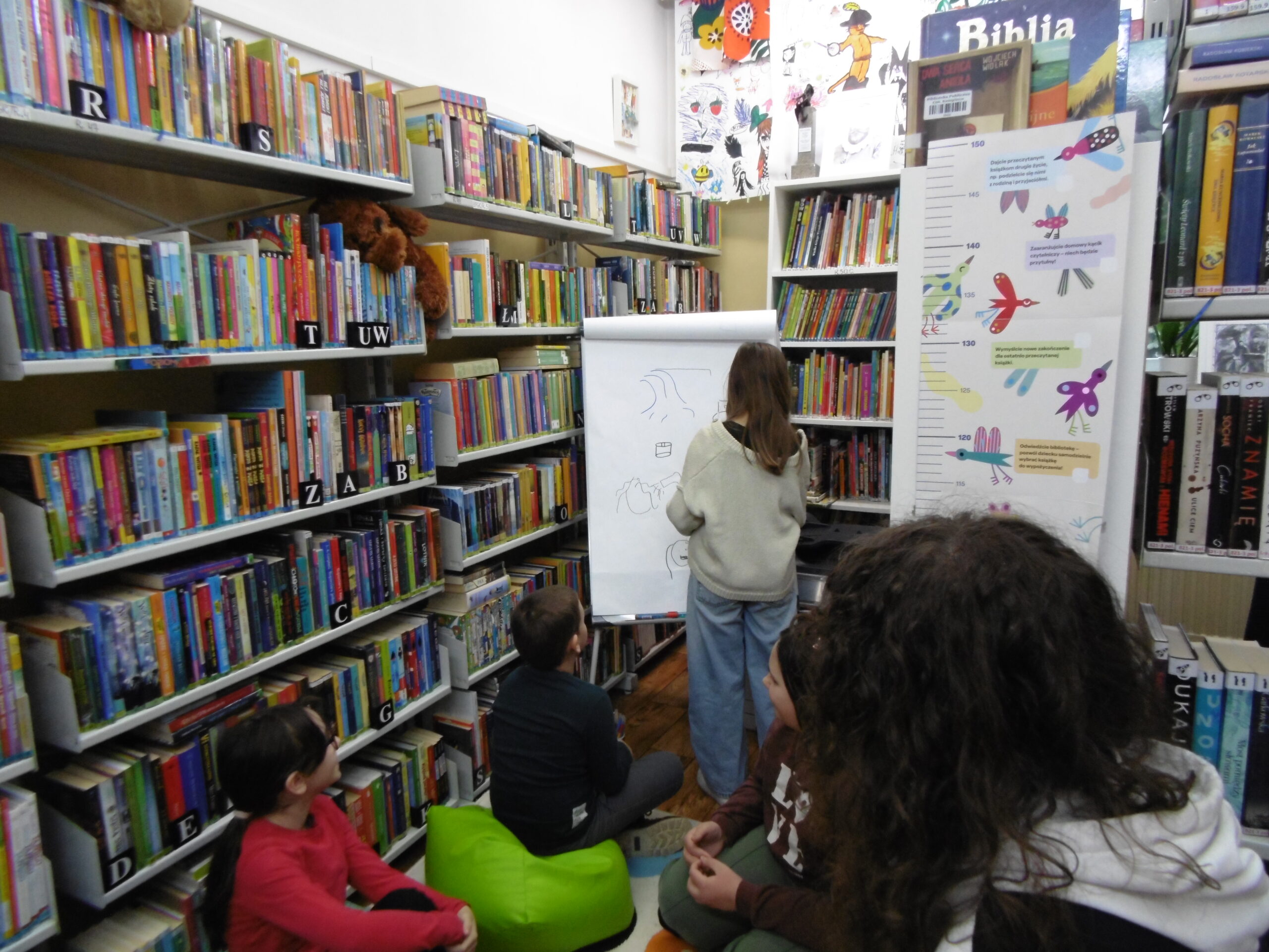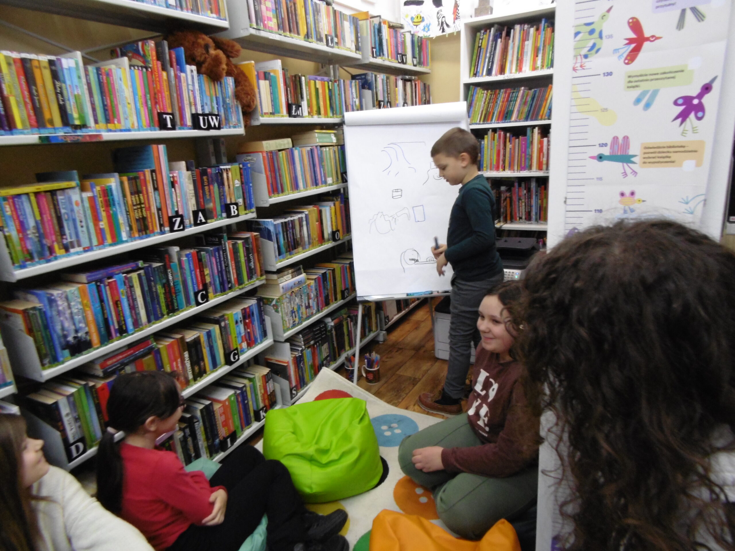 📚 Podczas ferii w bibliotece dzieci spędziły czas na pełnych energii zabawach, a największym hitem okazały się kalambury.